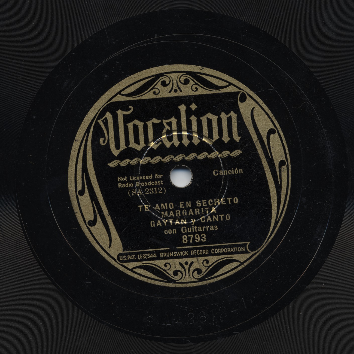 Staff Notes: Spottswood list the matrix number as SA 2312-1