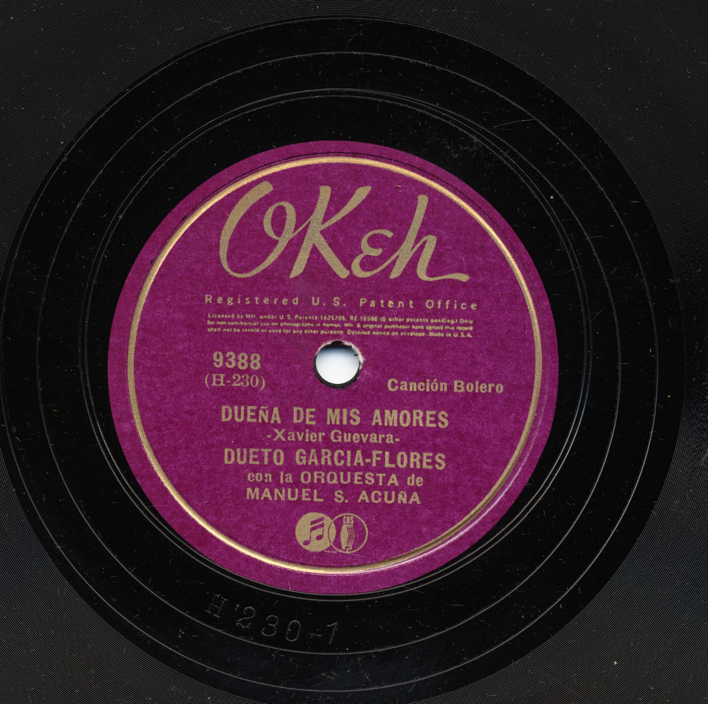 Spottswood list the matrix number as H 230-1. This 78 is from the Okeh label.